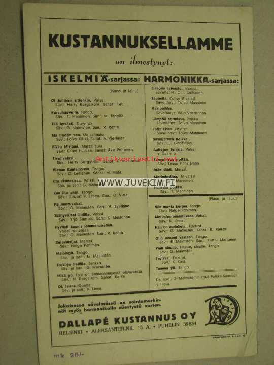 Dallapé Kustannus Oy, 194?17 x 27 cm notes.