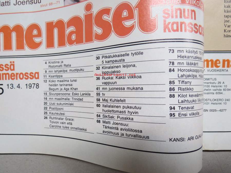 Me Naiset 1978 nr 15, 13.4.1978, Kristiina & Ristomatti Ratia, Trinidad, Veli-Pekka Ketola, Matti Joensuu, ym.