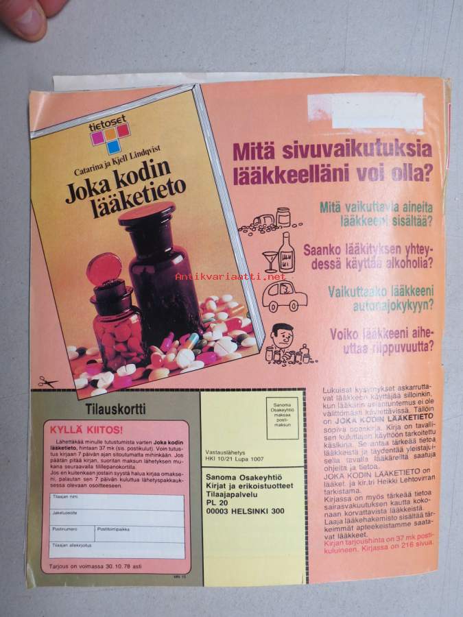 | Saatavilla | 1 kpl | | Julkaisuvuosi | 1978 | | Sivuja | 96 | | Kunto | K2 | | Sidonta/painoasu | Lehti | | Kielet | Suomi |