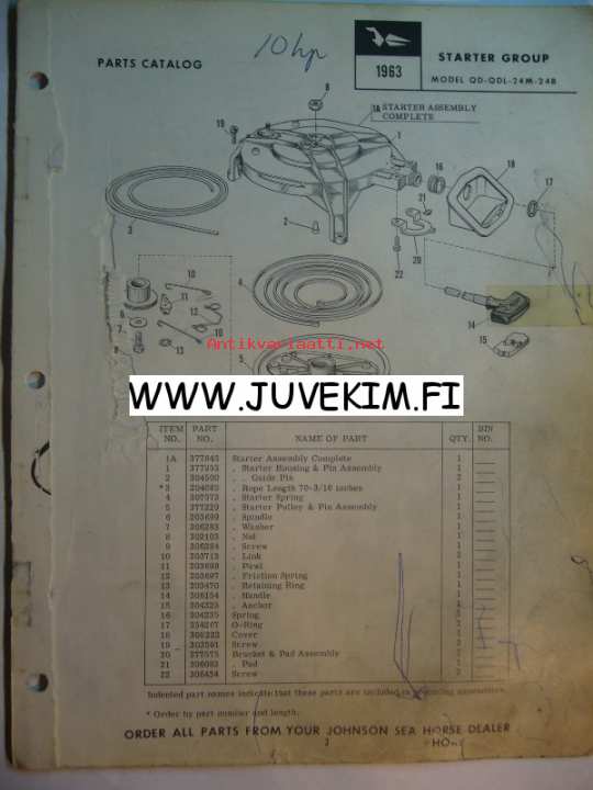 Johnson 1963 Sea horse models QD-QDL-24M-24B -parts catalog