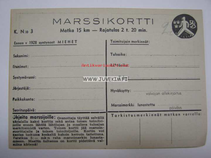 Maaottelumarssikortti 1941