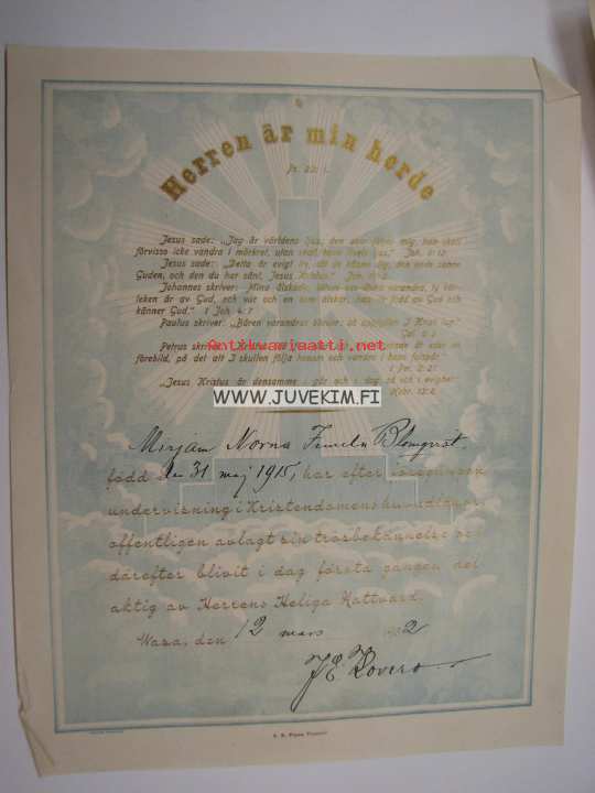 Mirjam Norma Irmelin Blomqvist 1915 -rippikoulutodistus