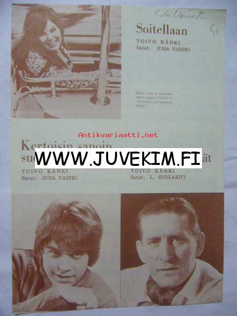 | Saatavilla | 1 kpl | | Julkaisuvuosi | 1969 | | Sivuja | 4 | | Kunto | K3 | | Kielet | Suomi |