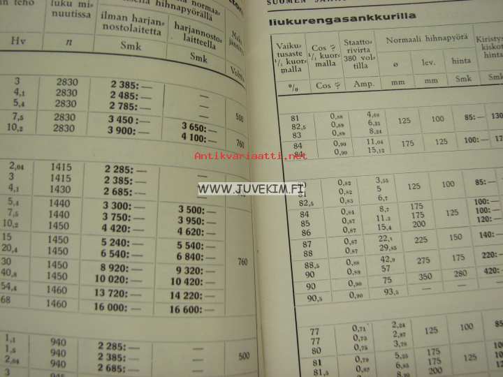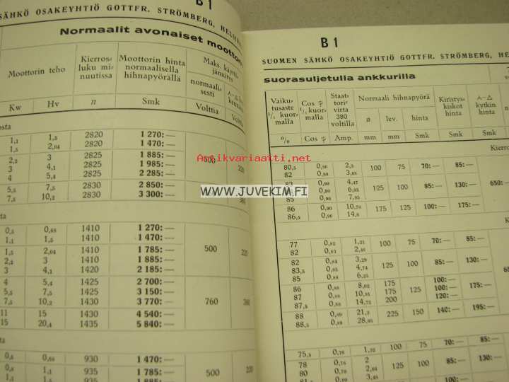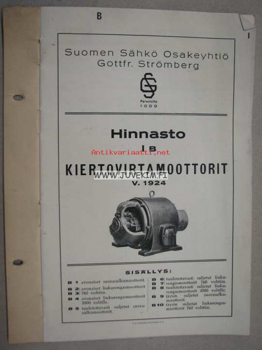 Suomen Sähkö Oy Gottfr. Stömberg Kiertovirtamoottorit -Hinnasto 1B 1924