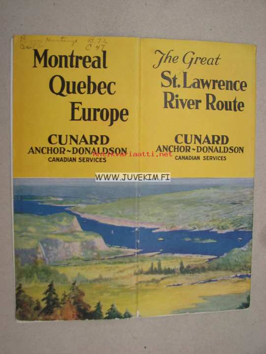Cunard / Anchor-Donaldson Canadian services, 192?