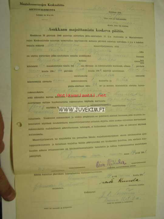 Maatalousseurojen Keskusliitto / Asutusvaliokunta -asukkaan majoittamista koskeva päätös