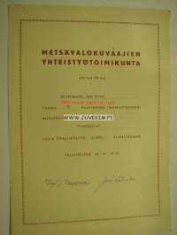 Metsävalokuvaajien yhteistyötoimikunta -palkintokirja Onni Hilska