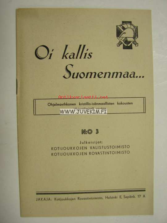 Oi kallis Suomenmaa - ohjelmavihkonen kristillis-isänmaallisten kokousten järjestämistä varten nr 3