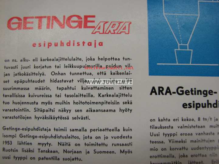ARA Getinge viljan esipuhdistaja -myyntiesite