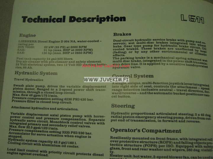 Liebherr L 511 pyöräkuormaaja -myyntiesite