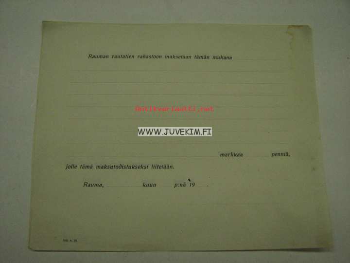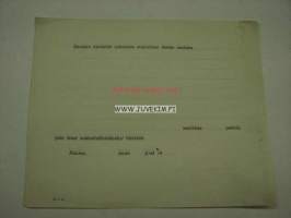 | Saatavilla | 1 kpl | | Julkaisuvuosi | 19?? | | Sivuja | 1 | | Kunto | K3 | | Kielet | Suomi |