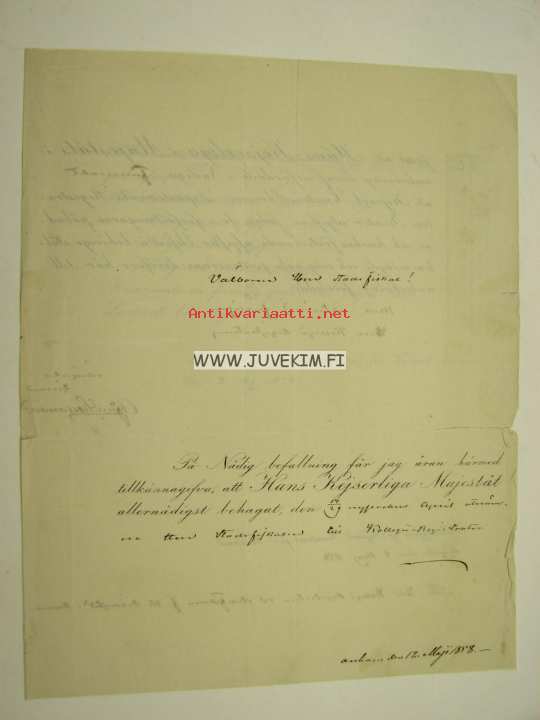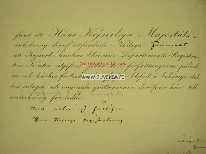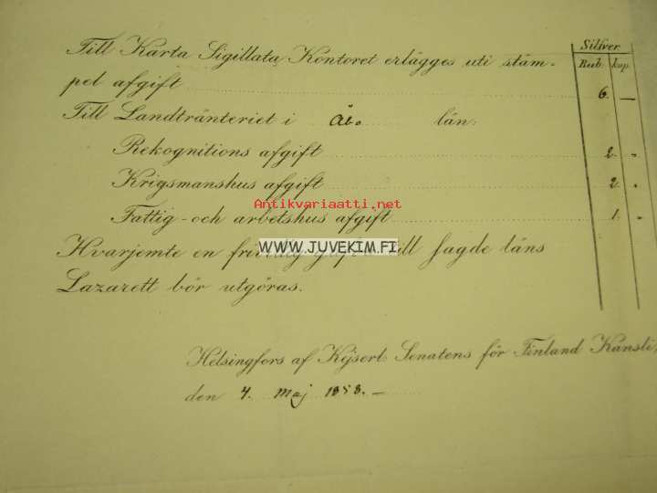 | Saatavilla | 1 kpl | | Julkaisuvuosi | 1858 | | Sivuja | 3 | | Kunto | K2 | | Kielet | Ruotsi |