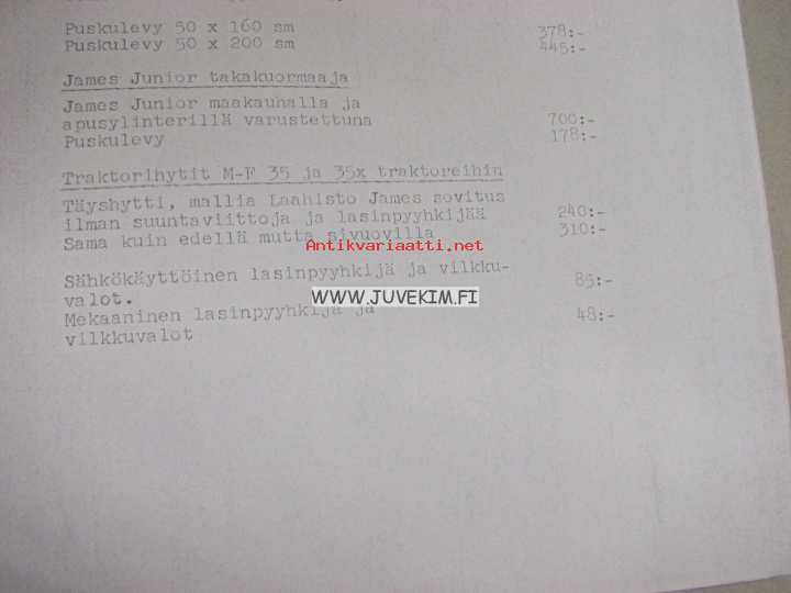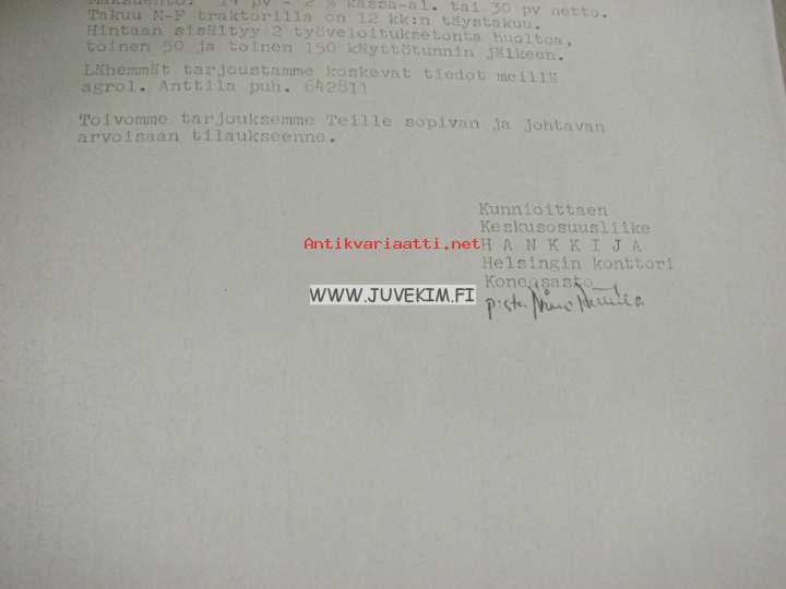 Hankkija Oy / Neste Oy traktoritarjousasiakirjat (kopio) Massey Ferguson 35X, 30