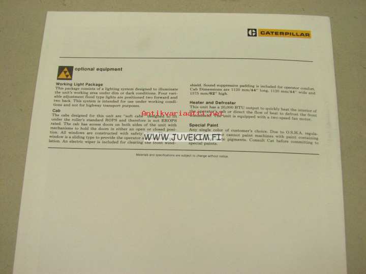 Caterpillar Inc. , 1985A-4 kokoinen myyntiesite.