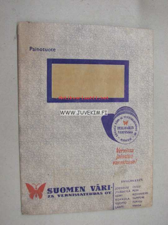 Suomen Väri- ja vernissatehdas Oy, 19??15 x 21 cm kuori.