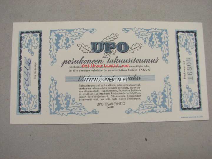 Upo Oy, 19??9 x 17 cm takuulappu.