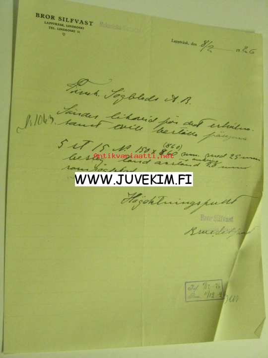 Bror Silfvast, Lappträsk 8.2.1926 -asiakirja