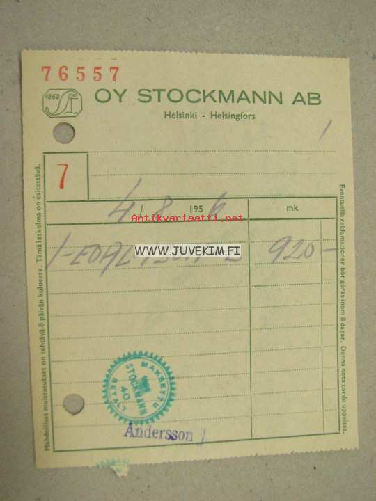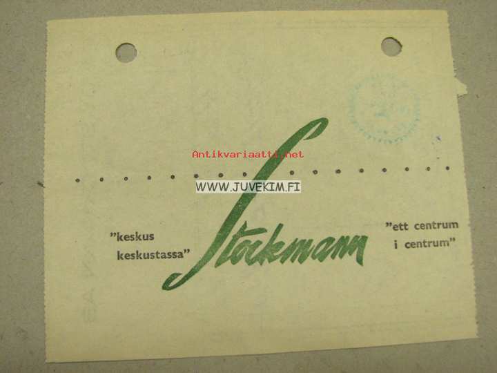 Oy Stockman Ab Helsinki 1958 -kuitti