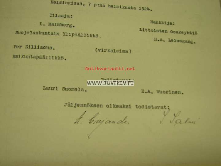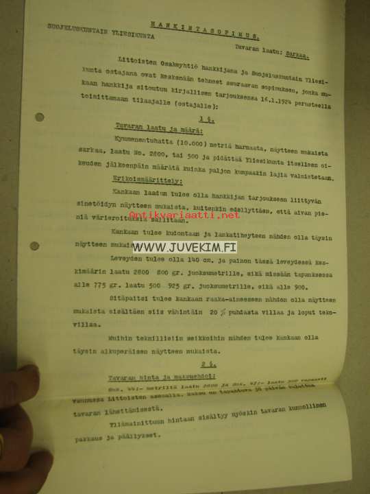 Littoinen Oy / Suojeluskuntain Yliesikunta Hankintasopimus -asiakirja Kopio
