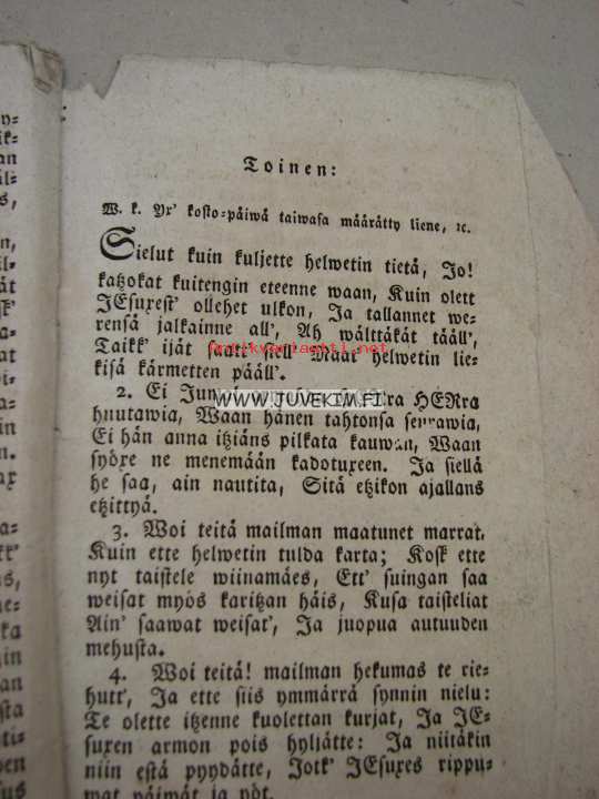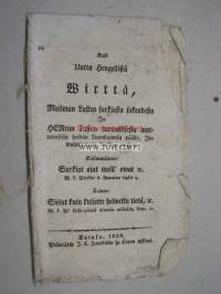 | Saatavilla | 1 kpl | | Julkaisuvuosi | 1828 | | Sivuja | 8 | | Kunto | K3 | | Kielet | Suomi |