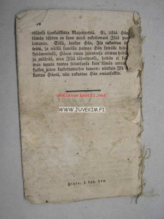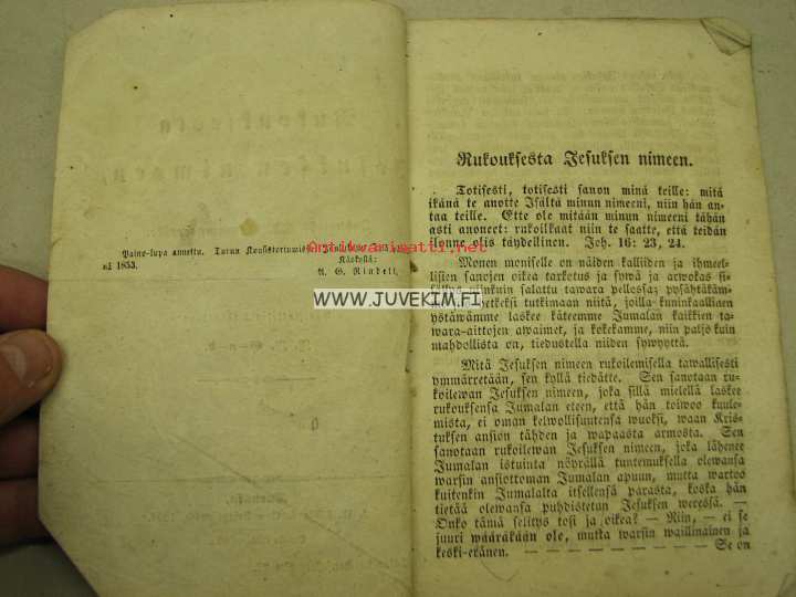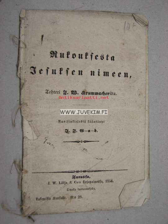 | Saatavilla | 1 kpl | | Julkaisuvuosi | 1854 | | Sivuja | 16 | | Kunto | K3 | | Kielet | Suomi |