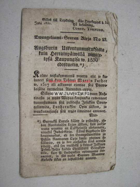 Ewangeliumi Seuran Kirja nr 23; Augsburgin uskontunnustuksesta...1830