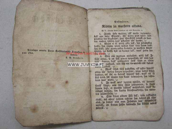 | Saatavilla | 1 kpl | | Julkaisuvuosi | 1861 | | Sivuja | 16 | | Kunto | K2 | | Kielet | Suomi |