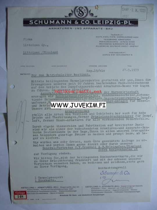 Schumann & Co.Leipzig-pl. Leipzig 27.9.1939 -asiakirja