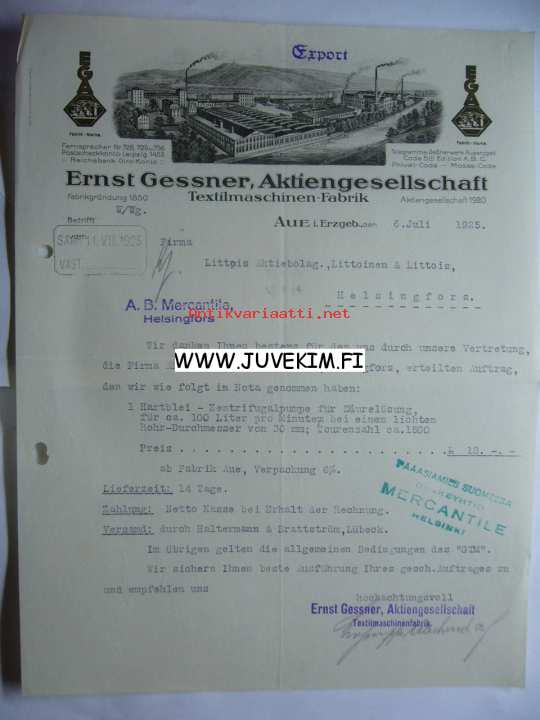 Ernst Gessner, Aktiengesellschaft Ergzeb 6.7.1925 -asiakirja