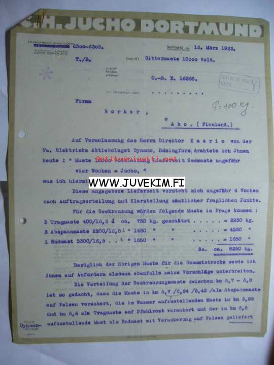 C.M. Jucho Dortmund 15.3.1923 -asiakirja