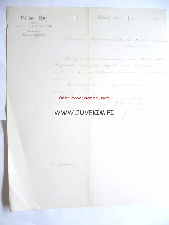 | Saatavilla | 1 kpl | | Julkaisuvuosi | 1891 | | Kunto | K3 | | Kielet | Ruotsi |