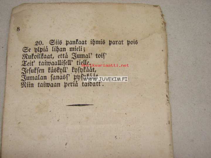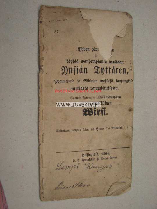 | Saatavilla | 1 kpl | | Julkaisuvuosi | 1864 | | Sivuja | 8 | | Kunto | K2 | | Kulunut | | Kielet | Suomi |
