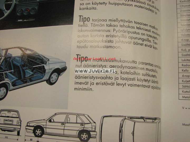 Fiat Uno, Tipo, Tempra, Tempra SW -myyntiesite