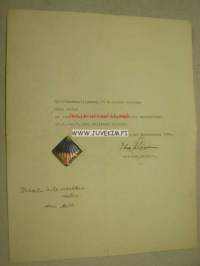 | Saatavilla | 1 kpl | | Julkaisuvuosi | 1940 | | Sivuja | 1 | | Kunto | K3 | | Kielet | Suomi |