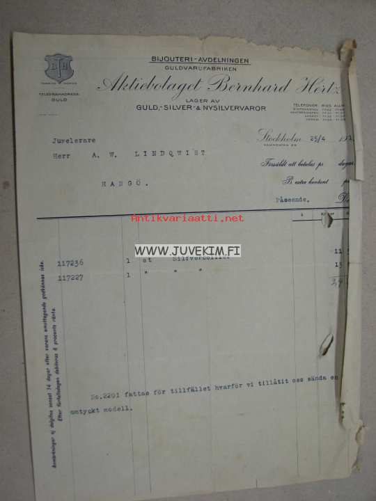 AB Bernhard Hertz Stockholm 25.4.1913 -asiakirja