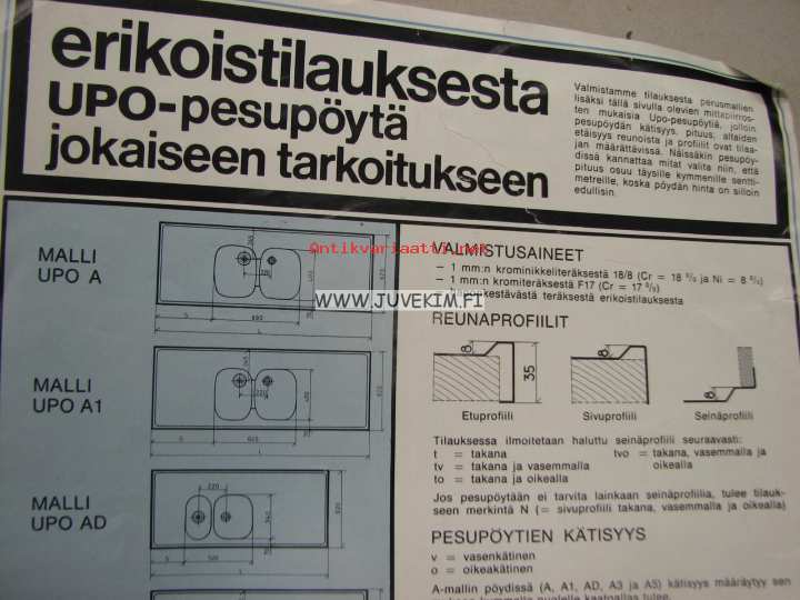 Upo pesupöytä (tiskipöytä) -myyntiesite