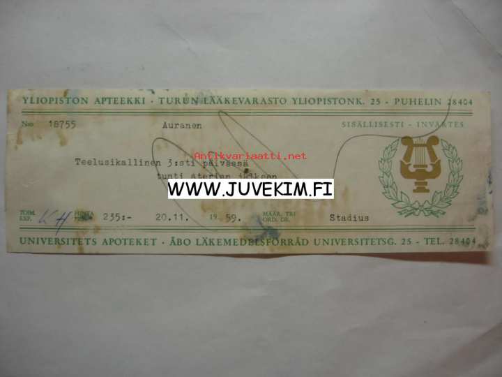 Yliopiston Apteekki 1959 Turku -signatuuri