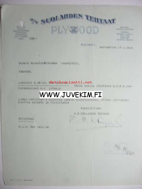 Osakeyhtiö C. Trapp ja K:ni Jälk. Turku 19.1.1923 -asiakirja