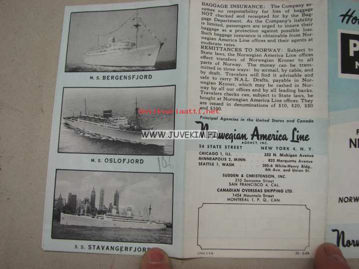 Norwegian American Line, 19598 x 15 cm esite.
