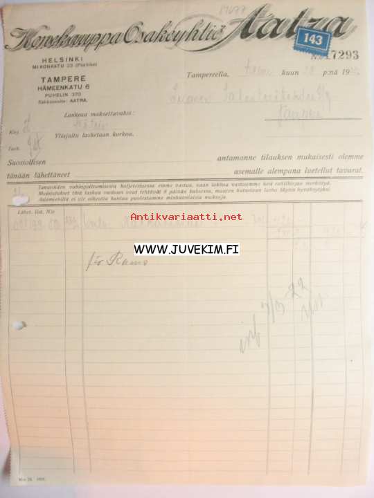 Konekauppa Osakeyhtiö Aatra Tampere 28.2.1922