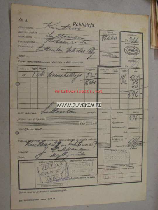 Littoinen Oy -VR rahtikirja leimattu; Kintaus