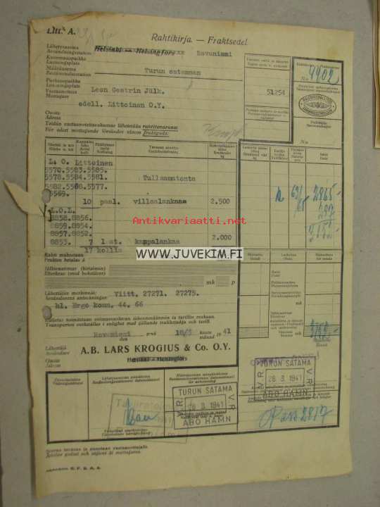 Littoinen Oy -VR rahtikirja leimattu; Rovaniemi