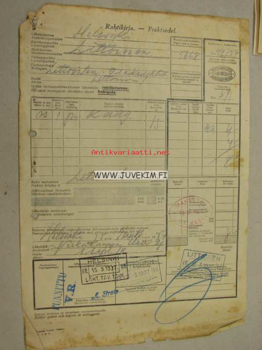 Littoinen Oy -VR rahtikirja leimattu; Helsinki