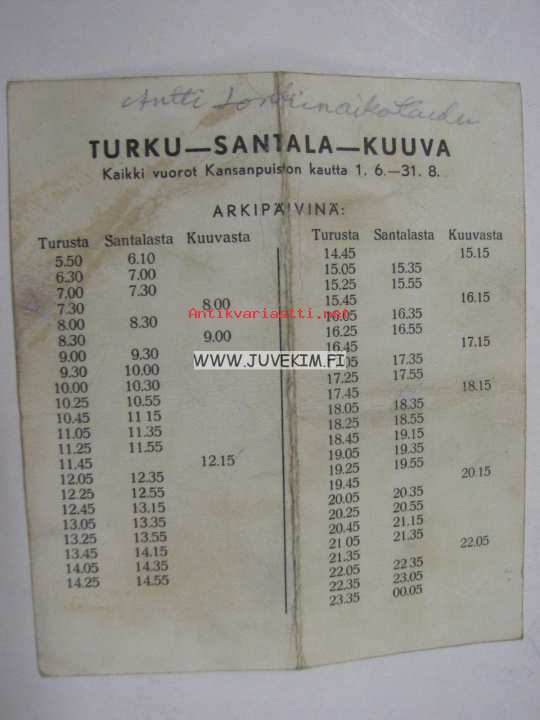 Turku - Santala - Kuuva -linja-autoaikataulu