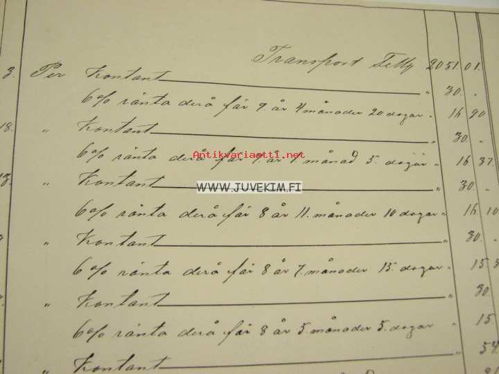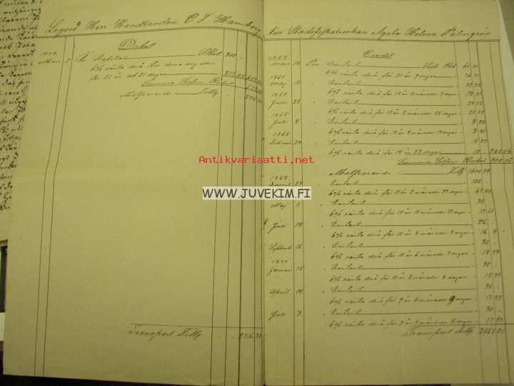 asia: kirjanpito kauppias C. F. Hambergin maksusuorituksista kaupunginviskaalin leski Agata Helena Palmgrénille