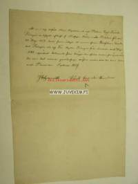asia: Allekirjoittaneet ovat toimittaneet kappalaiselle ja varapastorille, Carl Fredrik Palmgrénille vahvistetun otteen Turun raastuvanoikeuden 22.5.1852 päivätystä pöytäkirjasta, joka käsittää edesmenneen kaupunginviskaali Sven Robert Palmgrénin ja tämän vaimon, Agatha Palmgrenin (o.s. Lindholm) 18.5.1844 laaditun testamentin