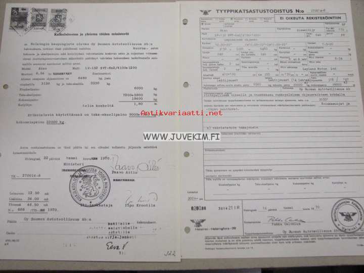 Oy Suomen Autoteollisuus Ab, 1970A-4 kokoiset asiakirjakopiot.