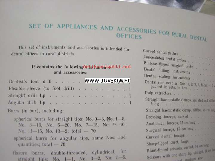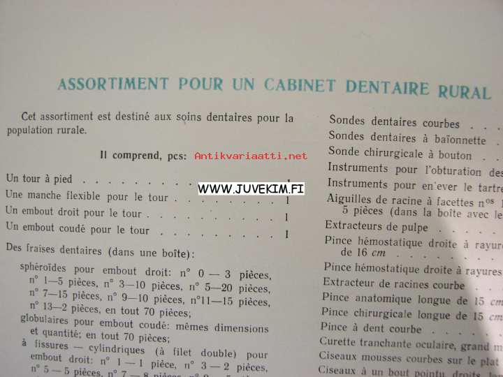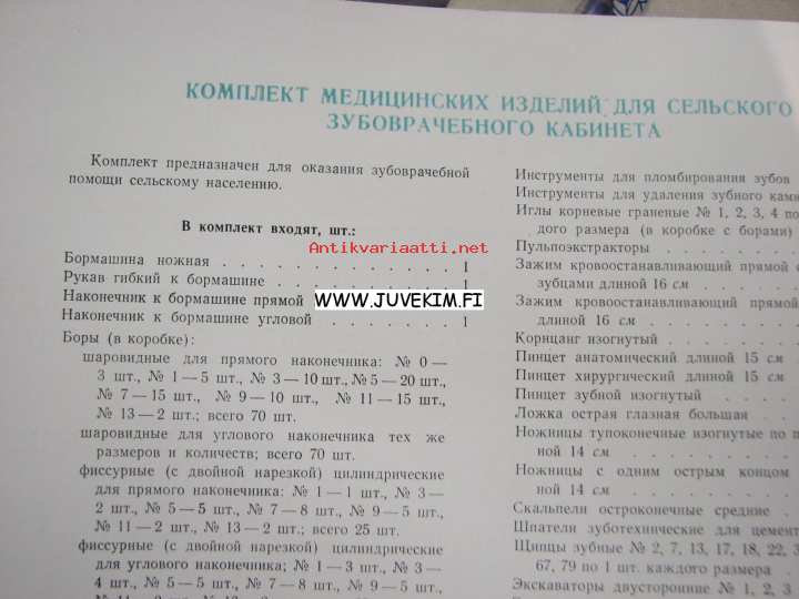 Komplekt medizinskih isdelij... -neuvostoliittolaisia "maalaishammaslääkärin vastaanoton välineitä", esite