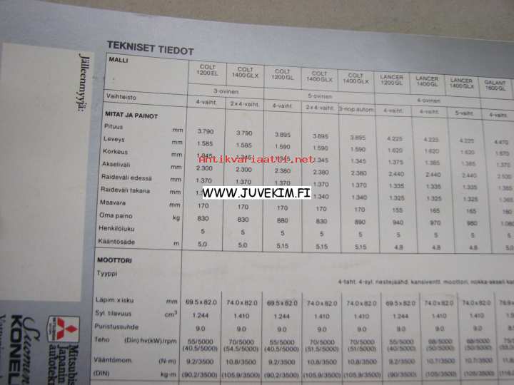 Mitsubishi Colt, Lancer, Galant -myyntiesite