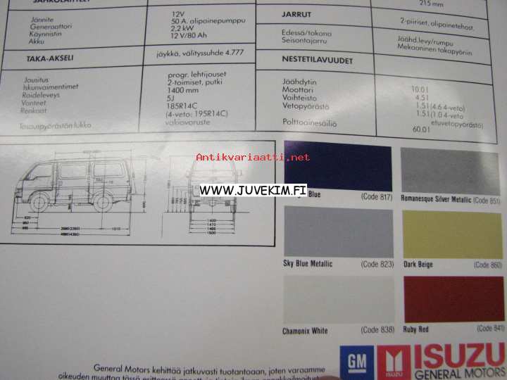 Isuzu GM, 1986A-4 kokoinen myyntiesite.